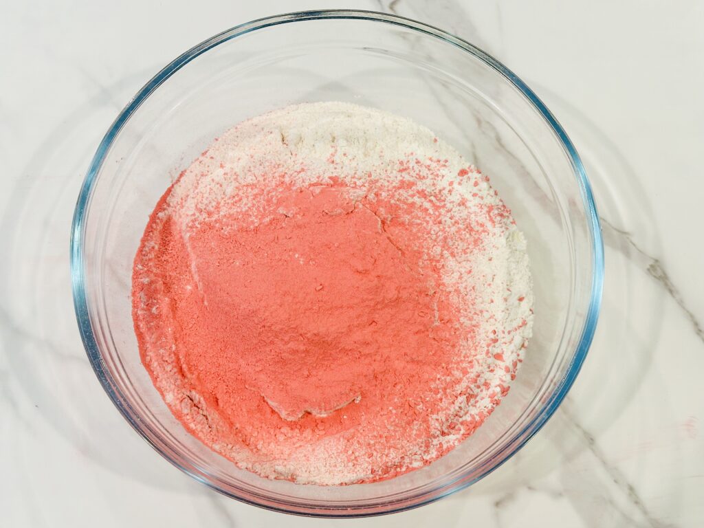 To get that perfect watermelon hue, grate a stick of red sidewalk chalk directly into the flour. We used a cheese grater to turn the chalk into fine powder, but you can also pop the chalk into a plastic bag and crush it with a hammer or rolling pinโwhatever works!
